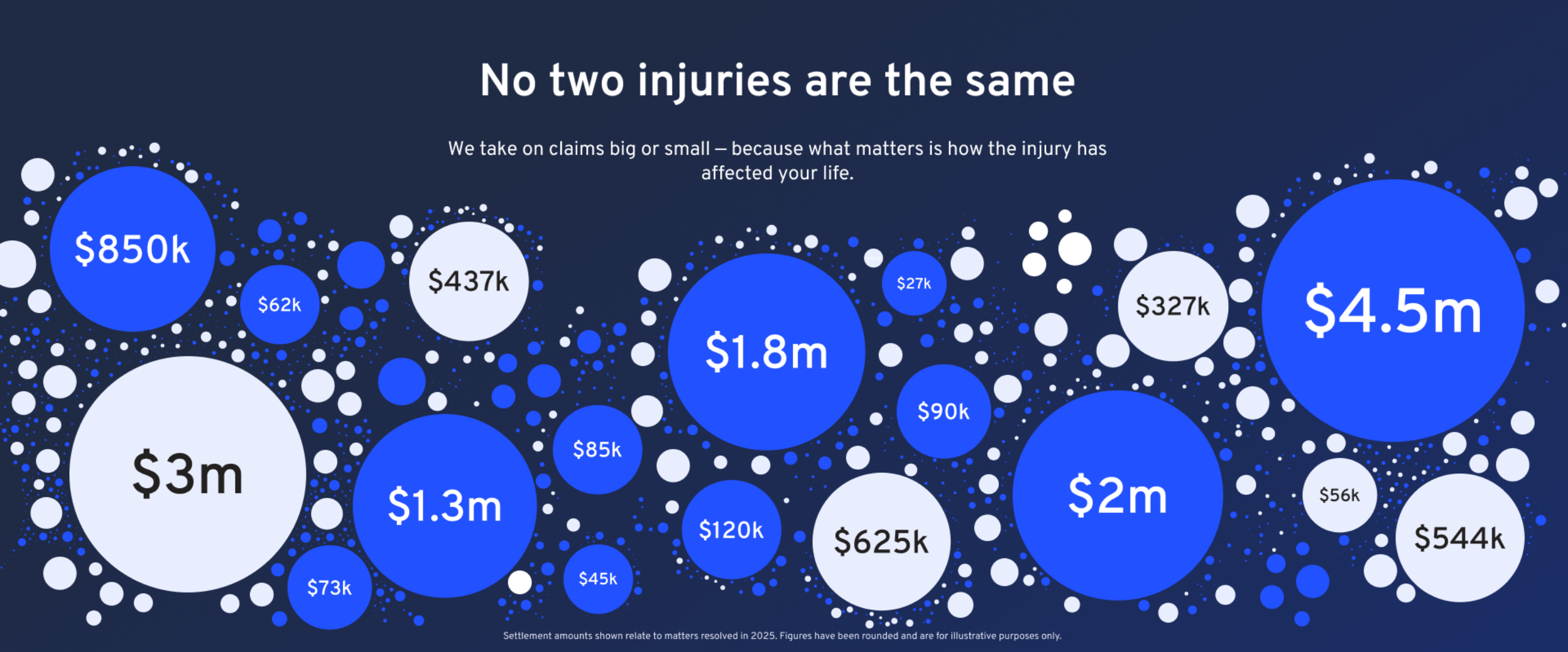 Dealing with the aftermath of an injury is tough, and the last thing you want to do is deal with the legal system. Thankfully, we do compensation differently. We promise real results delivered by real people, and to us, every case matters, big or small. We’ll assess your case and from first meeting to final result, you’ll have support from a team you can rely on, who will make sure to get the best result for you.